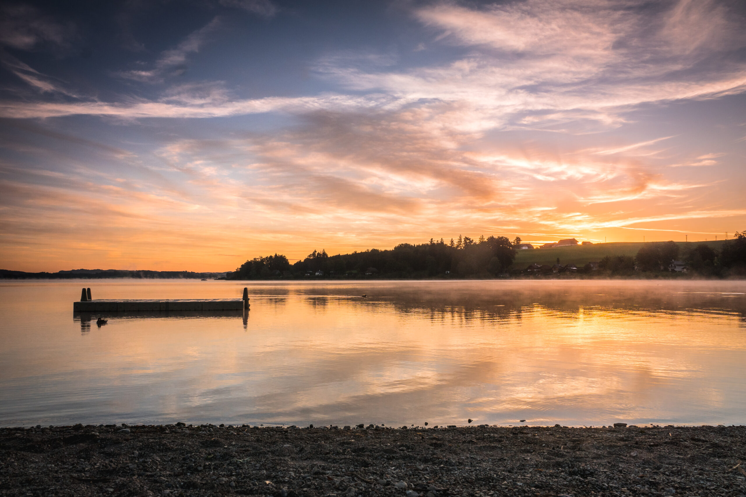 • Sonnenaufgang am Wallersee in Österreich